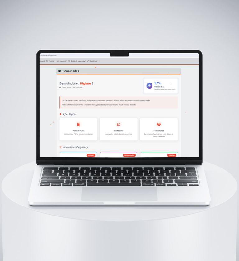 Uma plataforma digital inteligente para elaboração, gerenciamento e emissão do PGR, garantindo conformidade com as normas de segurança, economia de tempo e eficiência operacional para sua empresa.